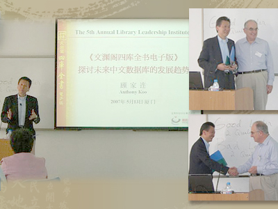 | 由香港大學和廈門大學共同舉辦的第5屆圖書館領袖年會,已於5月11日至15日,在廈門國家會計學院舉行,出席者包括東亞地區圖書館主管及高級館員,今年的主題為"Redefining Libraries: Web 2.0 and Other Challenges for Library Leaders"。主辦單位希望透過是次活動,改善學術及研究館員的管理和領導質素,以及促進圖書館之間的合作。