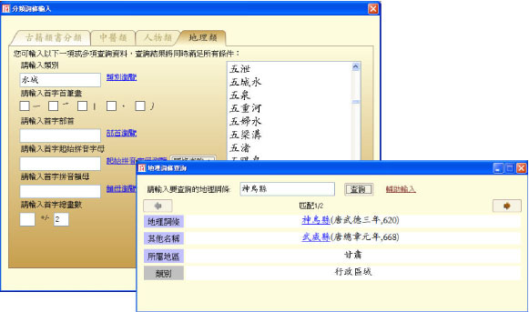 《文淵閣四庫全書電子版》3.0版最新推出首字筆劃為一至五劃和八至九劃(依簡體筆劃計算)的31,700條地理詞條,並將這些詞條歸納為:山脈、水域、交通、地名、行政區域、邦國、建築、部族和歷史遺址等九個類別,讀者可根據這些分類,在四庫電子版「分類詞條輸入」的「地理類」去檢索相關的詞條。 另外,我們還收錄了這些詞條的其他名稱、年代和所屬地區,讀者可以在「其他工具」的「地理詞條查詢」輸入想要檢索的詞 ...